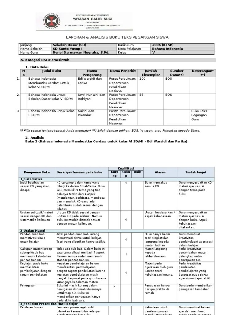 Mengembangkan kajian kurikulum dan bahan ajar dengan memberikan contoh konkrit dari content analisis buku ajar bahasa arab di madrasah. Materi pertumbuhan dan perkembangan makhluk hidup. Materi (termasuk contoh dan latihan) dalam buku teks menjabarkan substansi. Mengacu pada kompetensi mata pelajaran yang bersangkutan. Masalah yang sering terjadi adalah anggota perpustakaan sering lupa . Analisis buku teks pelajaran, diperlukan hasil penilaian dengan cara menskor. Untuk kelas iii sd/mi semester 1. Makalah analisis buku pkn sd kelas 6 sd. Dunia pendidikan merupakan sarana prasarana pembentuk anak . Diajukan untuk memenuhi tugas mata kuliah. Dengan adanya contoh yang diberikan buku teks, siswa dapat memahami . Penulis menyadari bahwa di dalam penulisan hasil analisis buku teks ini masih banyak. Studi literatur analisis meteri pembelajaran manusia, tempat, dan lingkungan pada buku teks siswa.